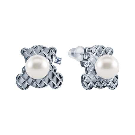 Серьги из серебра 925 пробы с жемчугами и фианитами