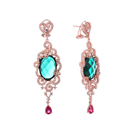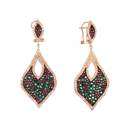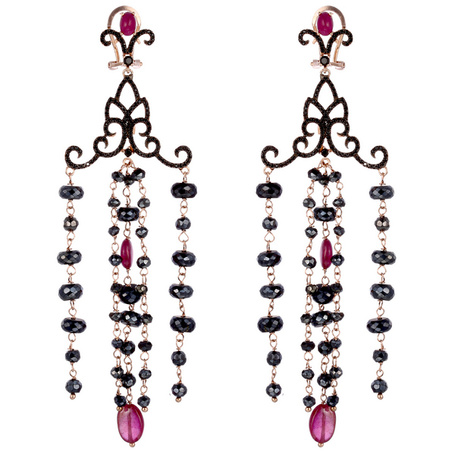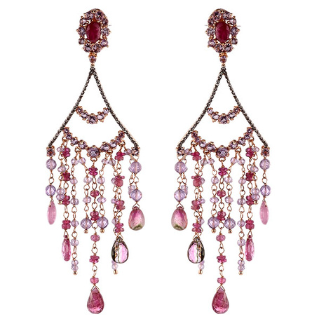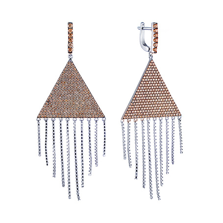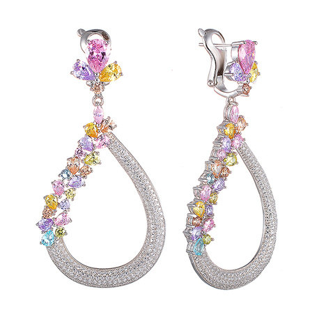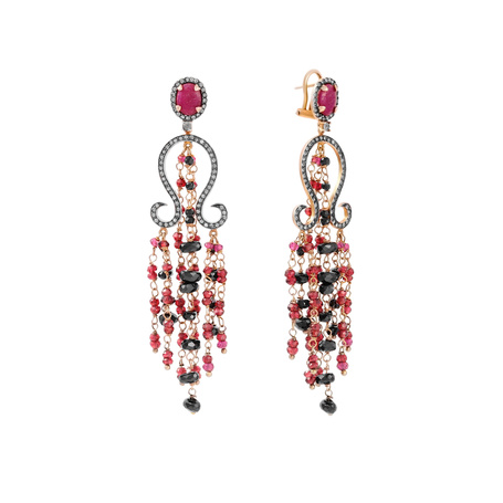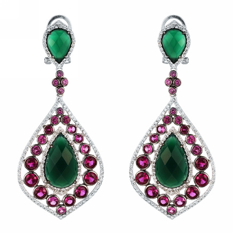 Серьги из серебра 925 пробы с корундами, родолитами, шпинелью и фианитами
