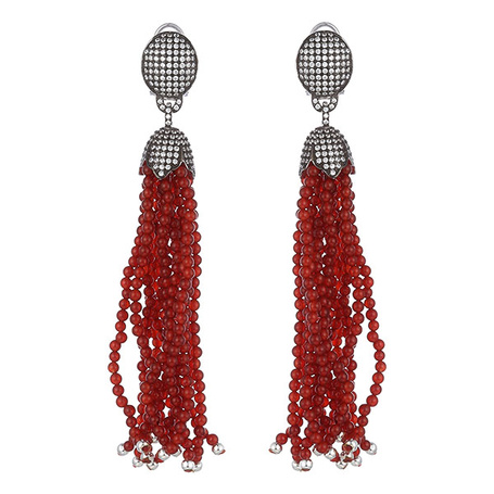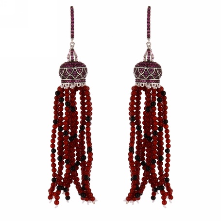 Серьги из серебра 925 пробы с агатом, рубинами синтетическими и фианитами