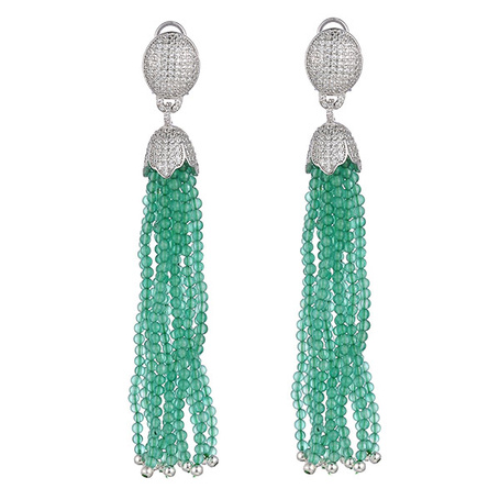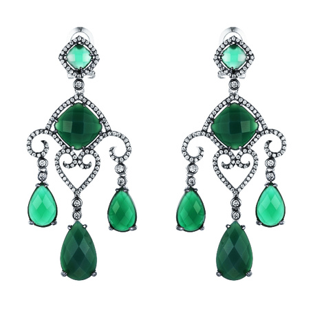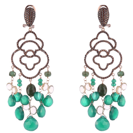 Серьги из серебра 925 пробы с агатом, бериллами, кварцем и фианитами