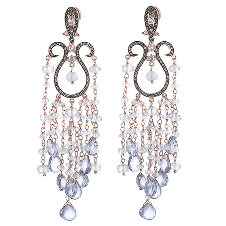Серьги из серебра 925 пробы с топазами лондон, аквамаринами и фианитами