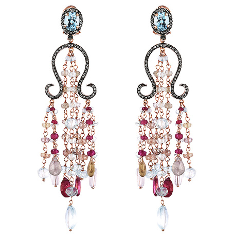 Серьги из серебра 925 пробы с топазами, апатитами, аквамаринами и фианитами