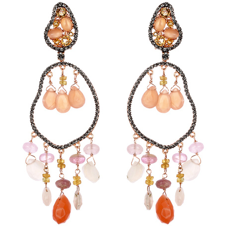 Серьги из серебра 925 пробы с халцедонами, цитринами и фианитами