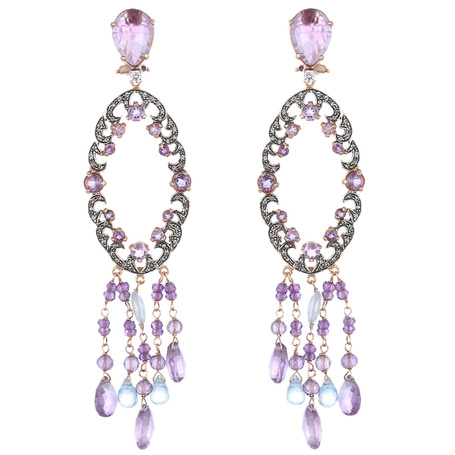 Серьги из серебра 925 пробы с аметистами, топазами и фианитами