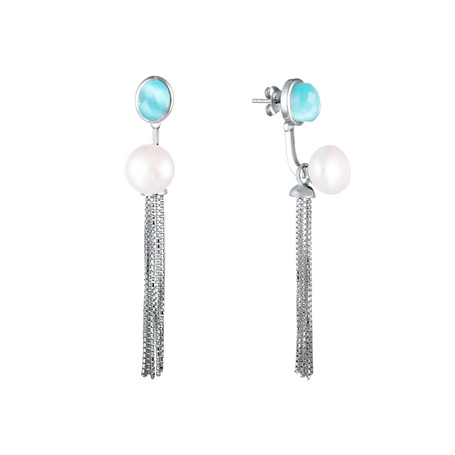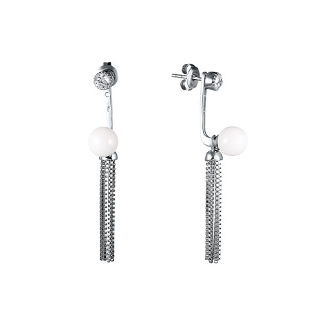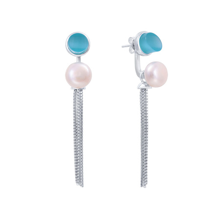 Серьги из серебра 925 пробы с ювелирным стеклом и жемчугом синтетическим