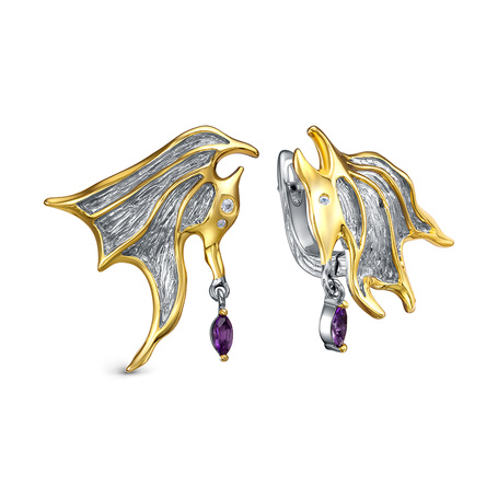 Серьги из серебра 925 пробы с аметистами, топазами и родолитами