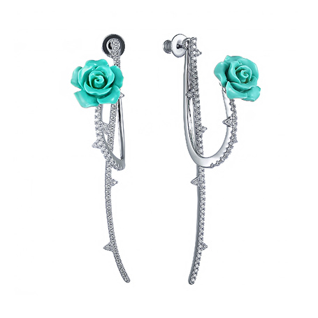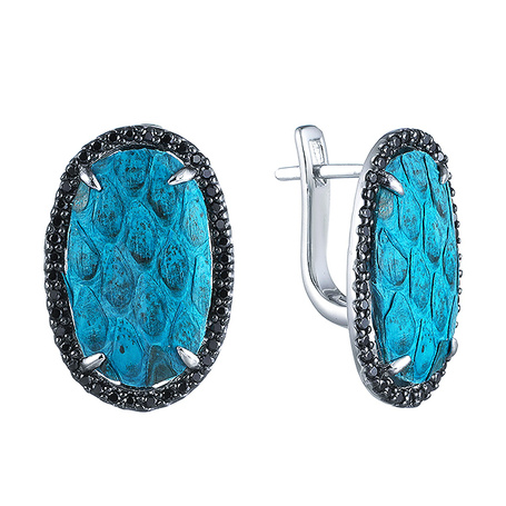Серьги из серебра 925 пробы с фианитами и ювелирным стеклом