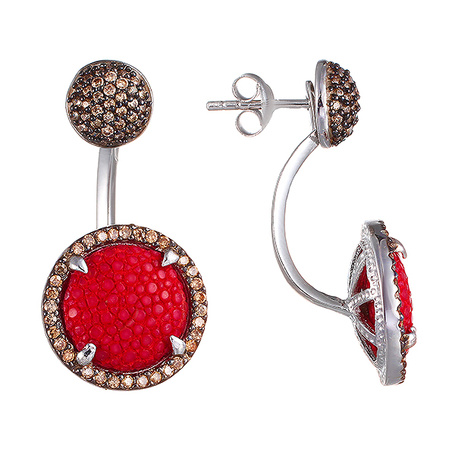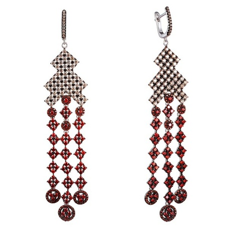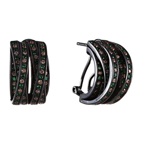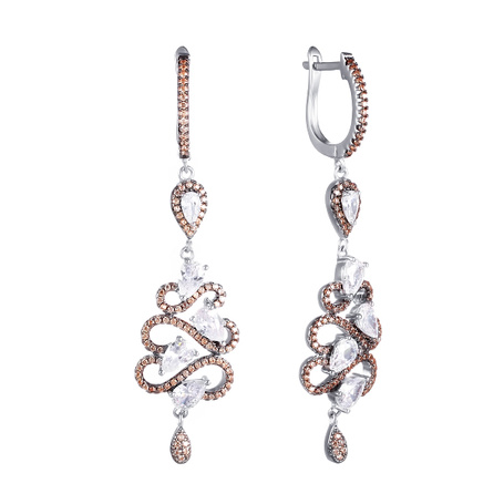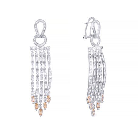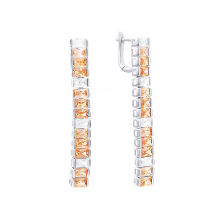 Серьги из серебра 925 пробы с фианитами и ювелирным стеклом