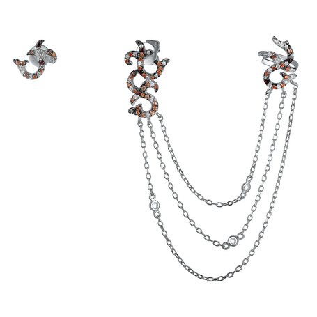 Асимметричные серьги из серебра 925 пробы с фианитами