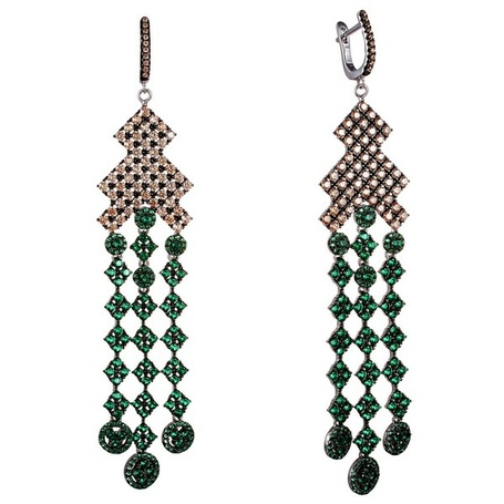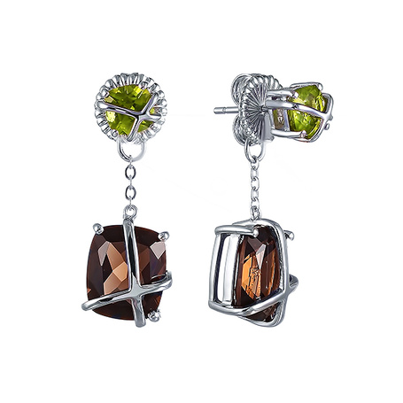 Серьги из серебра 925 пробы с перидотами и раухтопазами