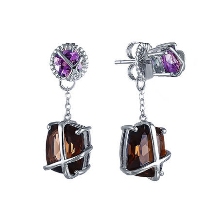 Серьги из серебра 925 пробы с аметистами и раухтопазами