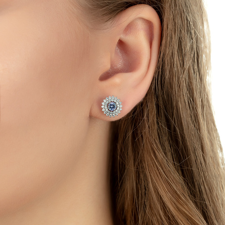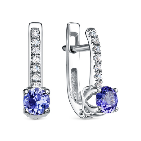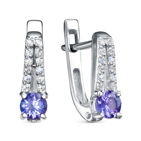 Серьги из серебра 925 пробы с танзанитами и фианитами