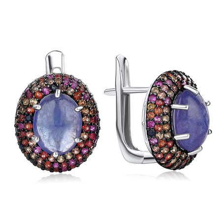 Серьги из серебра 925 пробы с сапфирами, танзанитами и топазами