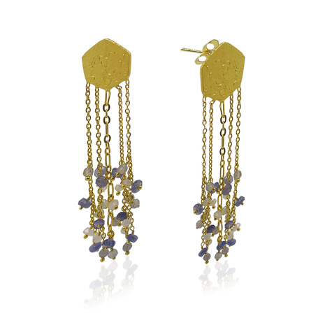 Серьги из серебра 925 пробы с танзанитами, лунным камнем и лабрадоритами