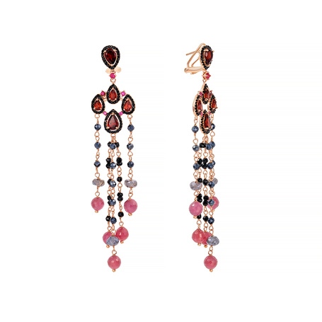 Серьги из серебра 925 пробы с гранатами, корундами, шпинелью и фианитами