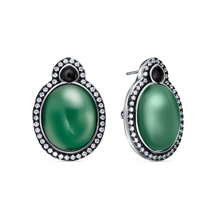 Серьги из серебра 925 пробы с фианитами, агатом и ониксом