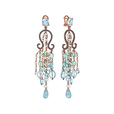 Серьги из серебра 925 пробы с топазами, апатитами, аквамаринами и фианитами