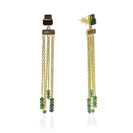 Серьги из серебра 925 пробы с раухтопазами, кварцем, авантюринами и апатитами