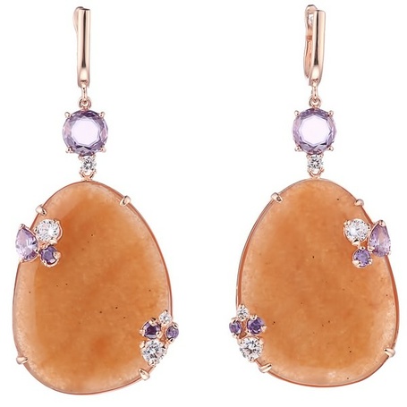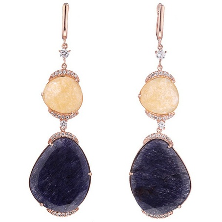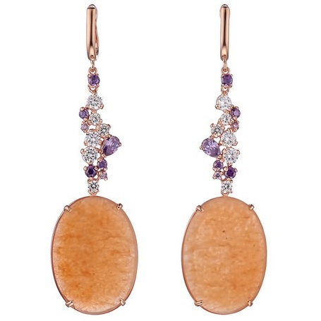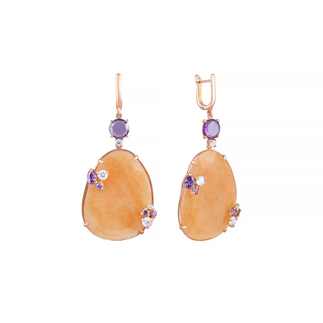 Серьги из серебра 925 пробы с раухтопазами, кварцем, авантюринами и апатитами