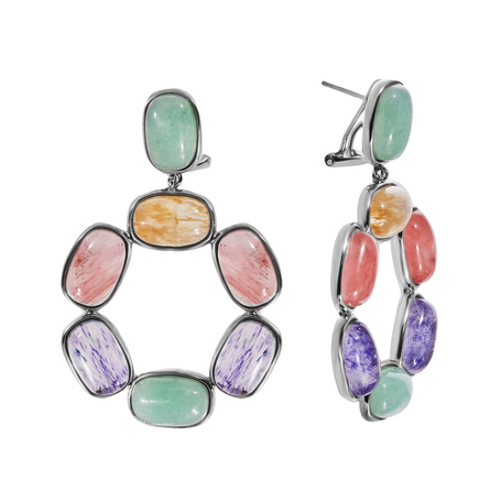 Серьги из серебра 925 пробы с авантюринами, кварцем, агатом и ювелирным стеклом
