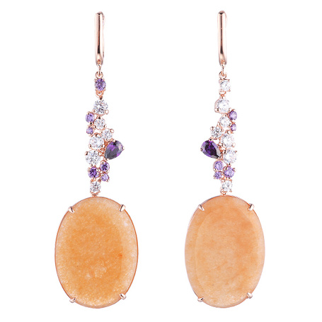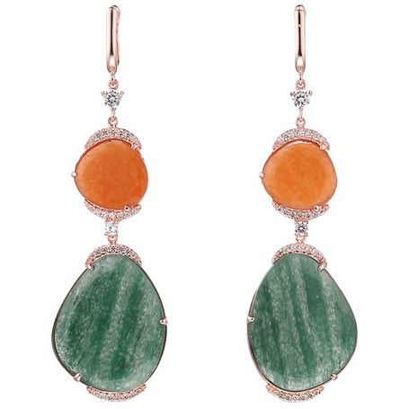 Серьги из серебра 925 пробы с авантюринами, жадеитом и фианитами