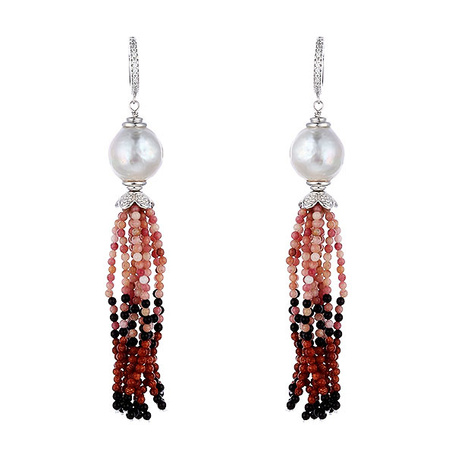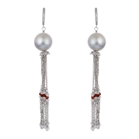 Серьги из серебра 925 пробы с жемчугами, родонитами, ониксом и авантюринами синтетическими