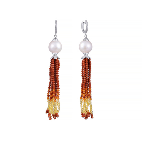 Серьги из серебра 925 пробы с жемчугами, цитринами, авантюринами синтетическими и фианитами