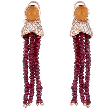 Серьги из серебра 925 пробы с авантюринами, гранатами и фианитами
