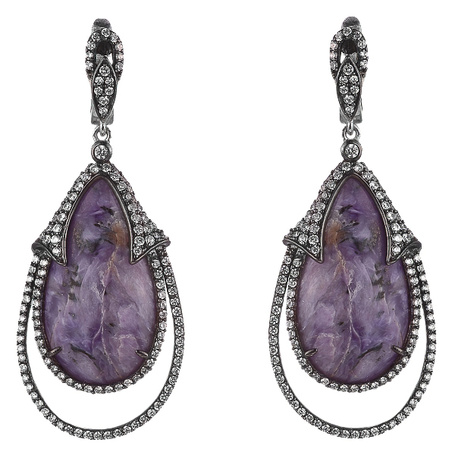 Серьги из серебра 925 пробы с чароитами и фианитами