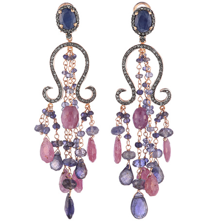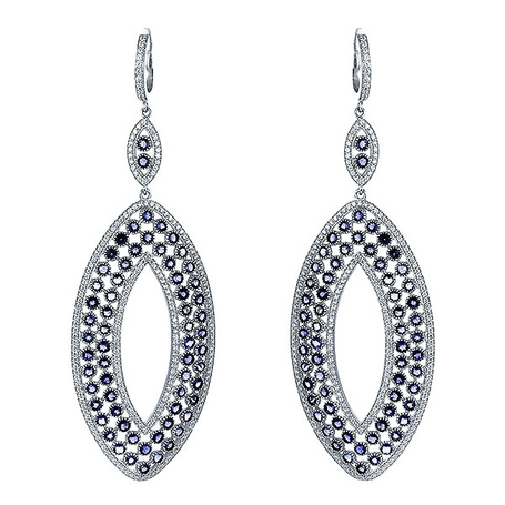 Серьги из серебра 925 пробы с сапфирами, корундами, иолитами и фианитами