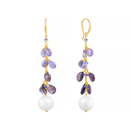 Серьги из серебра 925 пробы с танзанитами, иолитами и жемчугами