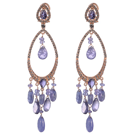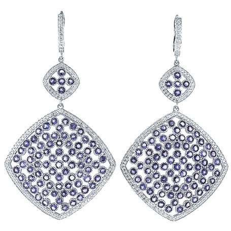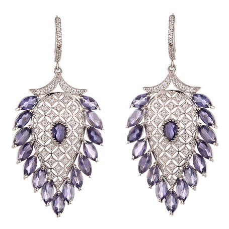 Серьги из серебра 925 пробы с иолитами, танзанитами и фианитами