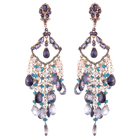 Серьги из серебра 925 пробы с халцедонами, иолитами, топазами, апатитами и фианитами