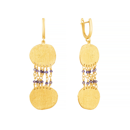 Серьги из серебра 925 пробы с аметистами синтетическими, топазами синтетическими и иолитами