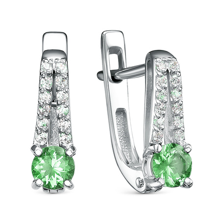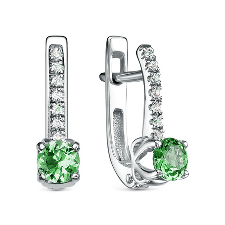 Серьги из серебра 925 пробы с изумрудами и фианитами
