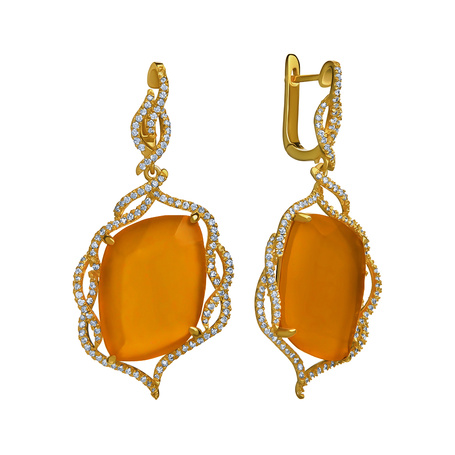 Серьги из серебра 925 пробы с кальцитами, раухтопазами и фианитами