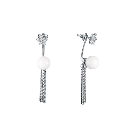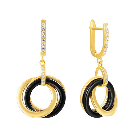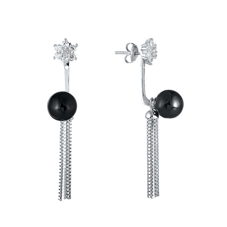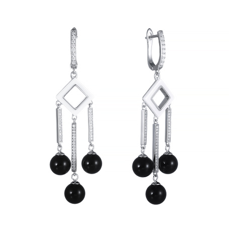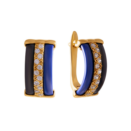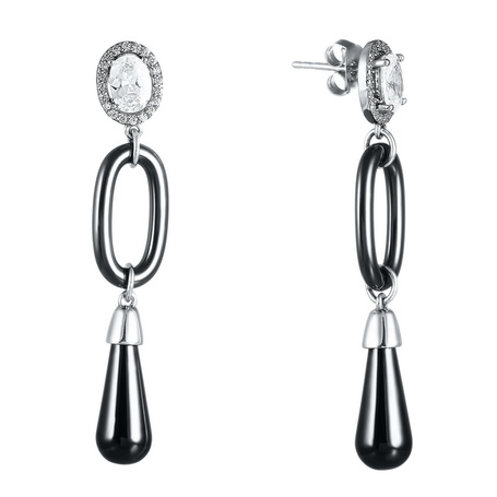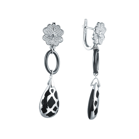 Серьги из серебра 925 пробы с фианитами и керамикой