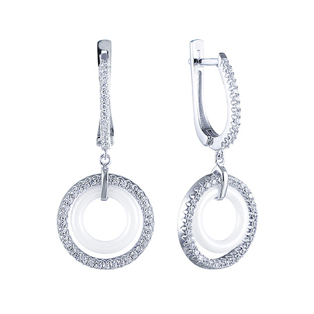 Серьги из серебра 925 пробы с керамикой и фианитами