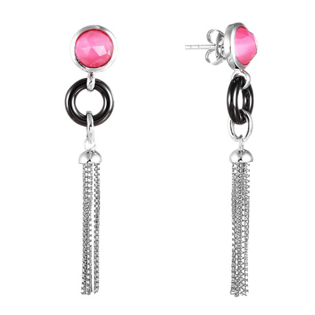 Серьги из серебра 925 пробы с керамикой, фианитами и силиконом