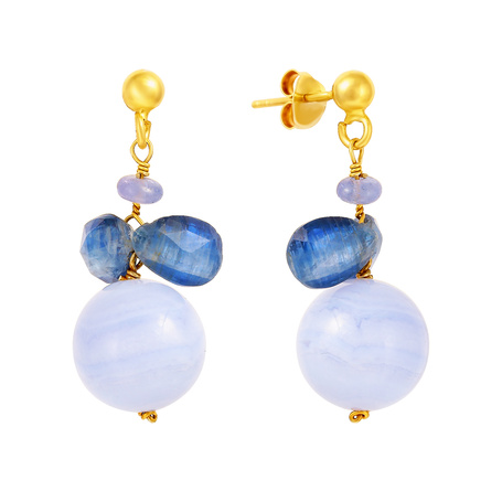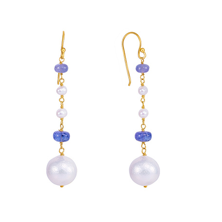 Серьги из серебра 925 пробы с жемчугами, танзанитами и кианитами