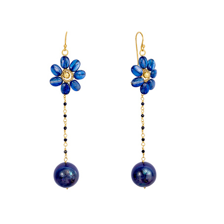 Серьги из серебра 925 пробы с кианитами, иолитами, рубинами облагороженными и фианитами