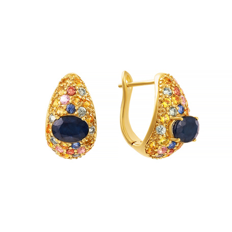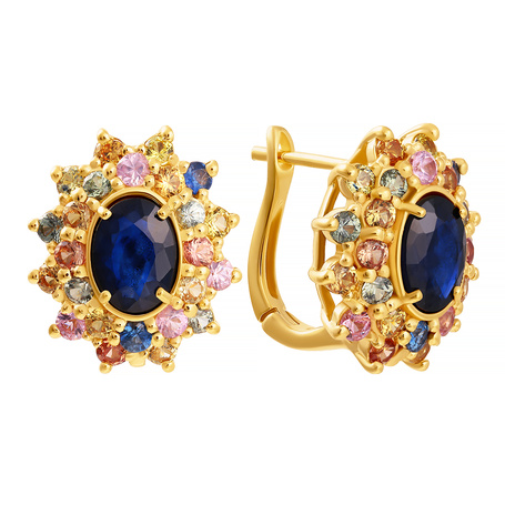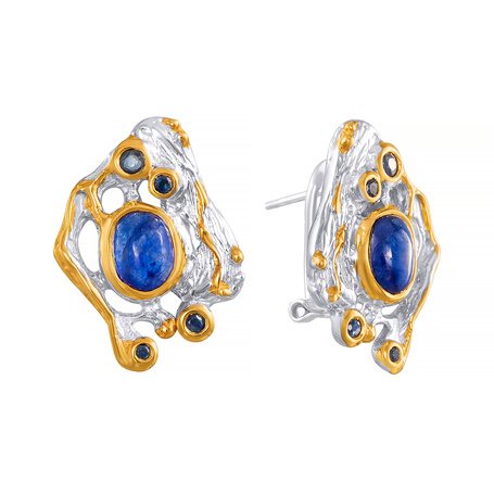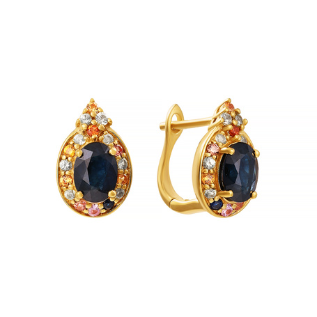Серьги из серебра 925 пробы с сапфирами, корундами, иолитами и фианитами