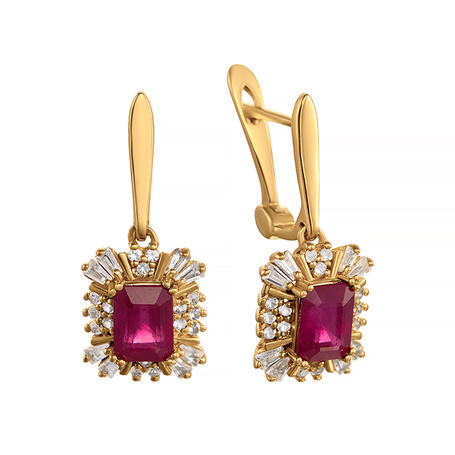 Серьги из серебра 925 пробы с корундами, родолитами, шпинелью и фианитами