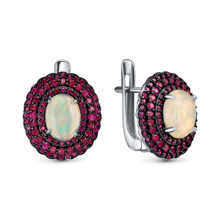 Серьги из серебра 925 пробы с опалами, турмалинами и корундами
