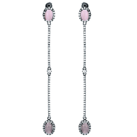 Серьги из серебра 925 пробы с кошачьим глазом искусственным и фианитами