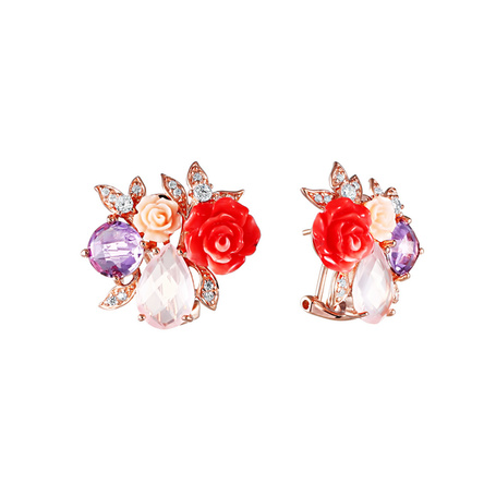 Серьги из серебра 925 пробы с топазами, аметистами, родолитами, цитринами, хромдиопсидом, гранатами и кварцем