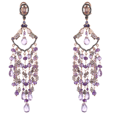 Серьги из серебра 925 пробы с лабрадоритами, аметистами и фианитами