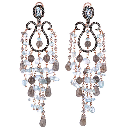 Серьги из серебра 925 пробы с аквамаринами, лабрадоритами, топазами и фианитами