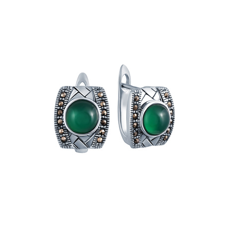 Серьги из серебра 925 пробы с агатом и марказитами