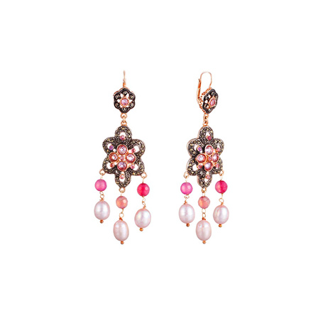 Серьги из серебра 925 пробы с агатом, аметистами, жемчугами и марказитами